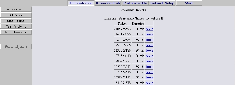 A "white list" of systems and web sites that you wish to allow your customers unrestricted access to. This can be used to allow your customers to visit your business web site without requiring an access code, or any function where you wish to allow your clients unrestricted access to a particular set of sites. An example may be a company conference in a hotel, where a special Hotspot is set up in the conference room, and you allow unrestricted access to the company web and email sites for conference attendees.